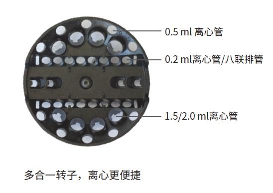 - 转子设计:多合一转子,可同时离心0.2/0.5/1.5/2.0 ml及八联排离心管