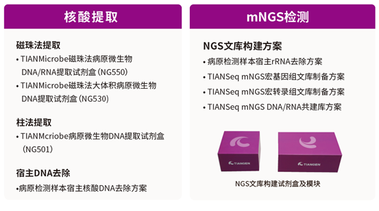 TIANGEN将继续秉承“质量为天,服务为根”的宗旨,坚持“CUSTOMER FIRST”的经营理念,不断优化产品质量,致力于为广大客户提供高性价比、稳定可靠的病原微生物提取检测产品和解决方案,保持开放、合作的态度,期待与产业同仁携手共进,助力mNGS精准诊断!