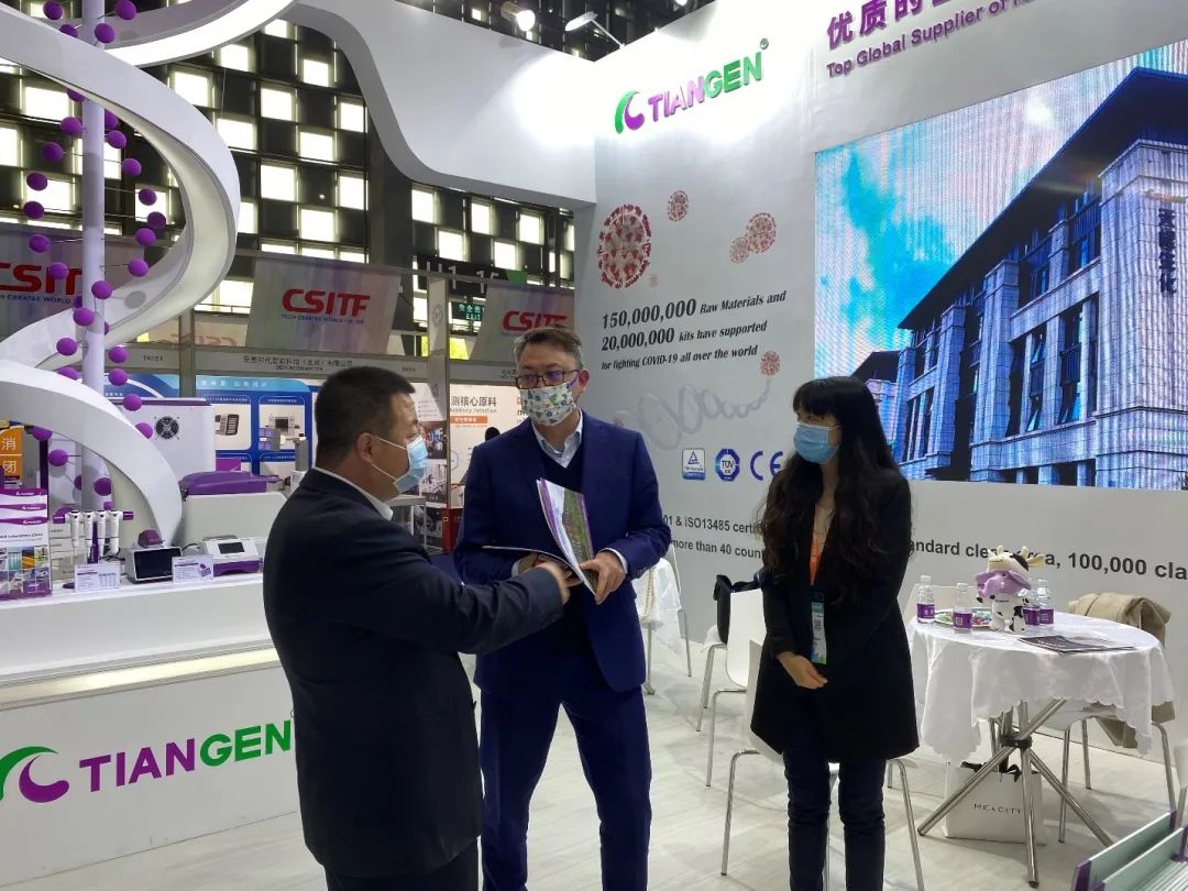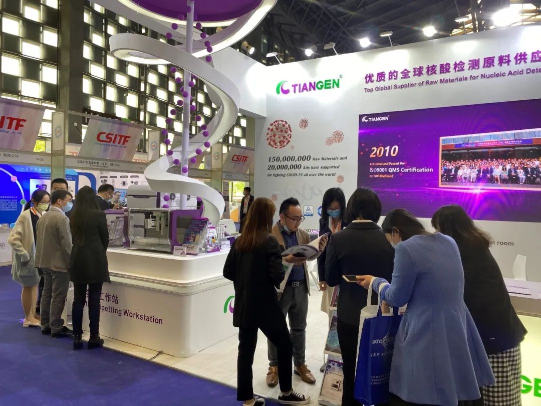 本次交易会上,TIANGEN不仅展示了高通量自动化核酸提取平台和移液工作站,还展示了检测用试剂类产品和原材料,吸引了来自国内外IVD企业参会者的驻足与交流。