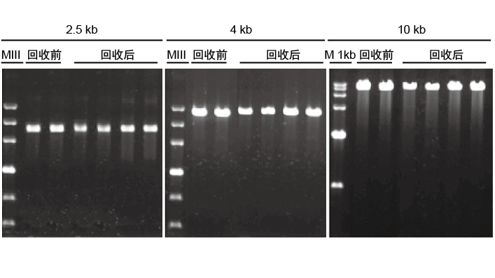 ■ 本试剂盒回收的 DNA 可适用于各种常规操作,包括酶切、PCR、测序、文库筛选、连接和转化等实验。