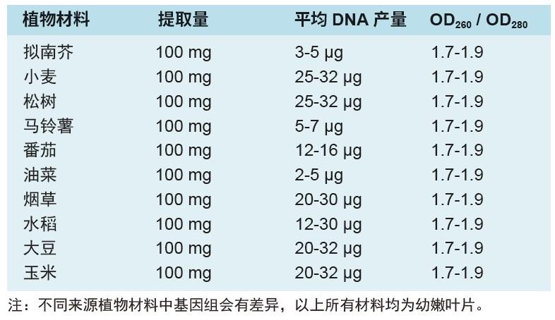 可根据实验需求从不同起始量植物组织中快速提取到高质量的基因组 DNA