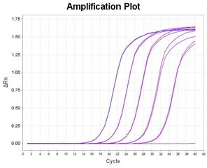 以miRbase Version 18收录的miRNA合成miRNA mimics(2x10^8copies)为模板,经过天根miRcute增强型miRNA cDNA第一链合成试剂盒(KR211)合成cDNA,10倍倍比稀释为5个梯度。利用天根miRcute增强型miRNA荧光定量检测试剂盒(FP411)和试剂盒中的下游引物以及引物库中的对应上有引物对hsa-miR-205-5p进行荧光定量检测,实验结果显示PCR扩增线性梯度良好,熔解曲线峰形单一特异,标准曲线显示扩增效率达96.25%。