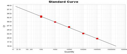 Target:SYBR Green Slope:-3.415 Y-Inter:43.493 R2:0.998 Eff%:96.25